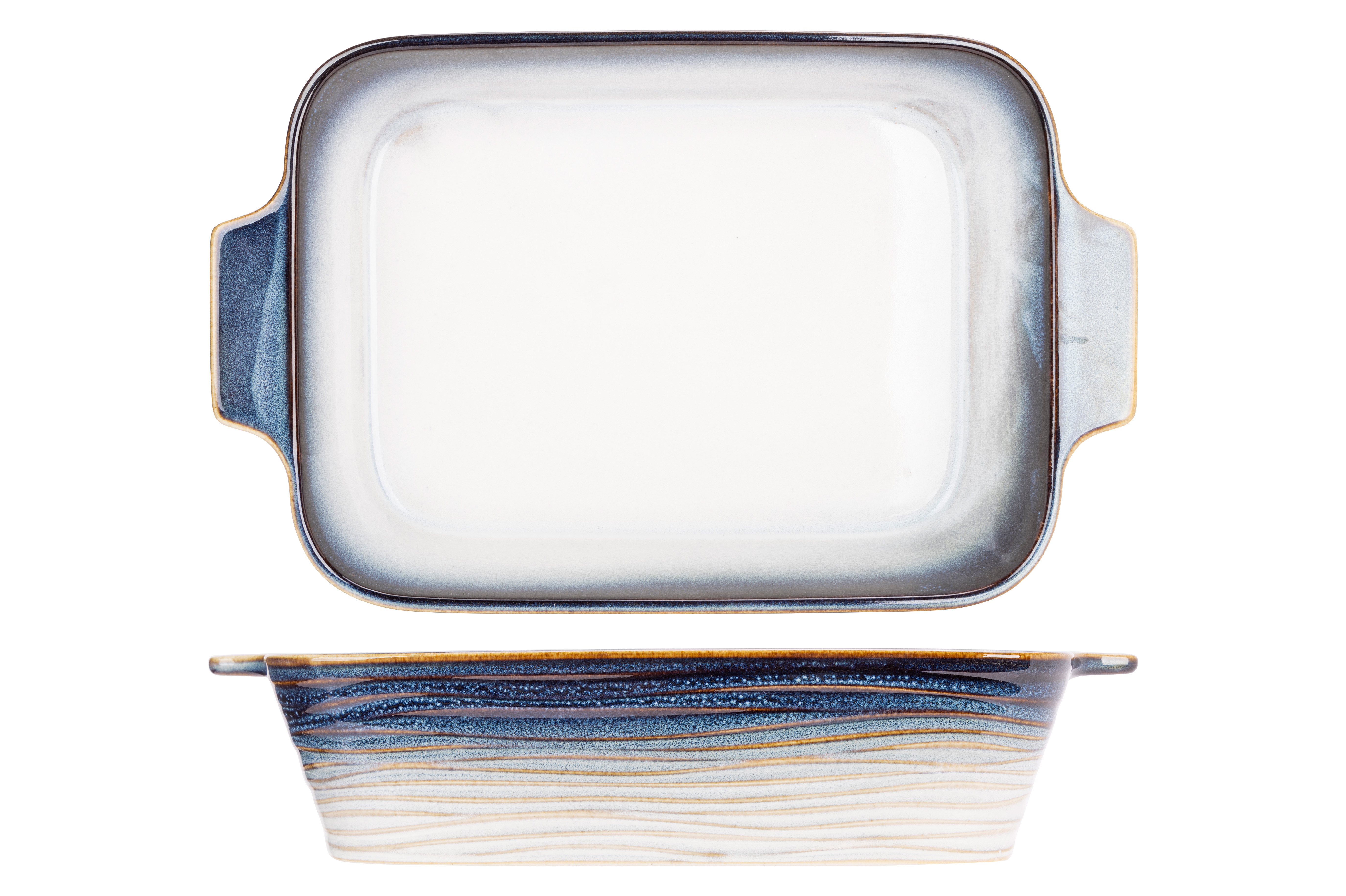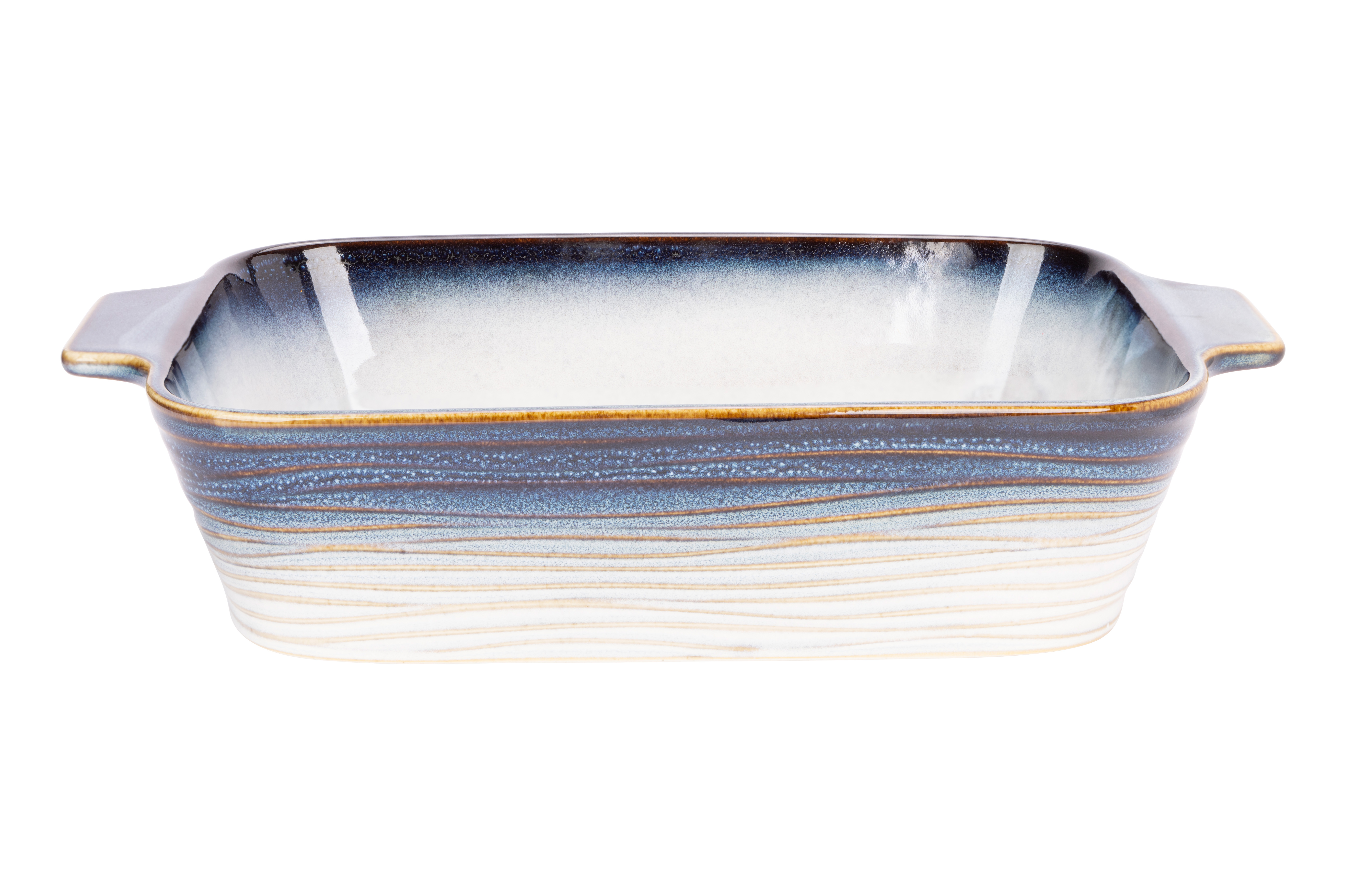 Nora Ovenschotel 25x15xH5cm. Gemaakt van steengoed, heeft het een duurzaam en makkelijk schoon te maken oppervlak. De opvallende witte en blauwe kleurstelling voegt een vleugje elegantie toe aan elke keuken.