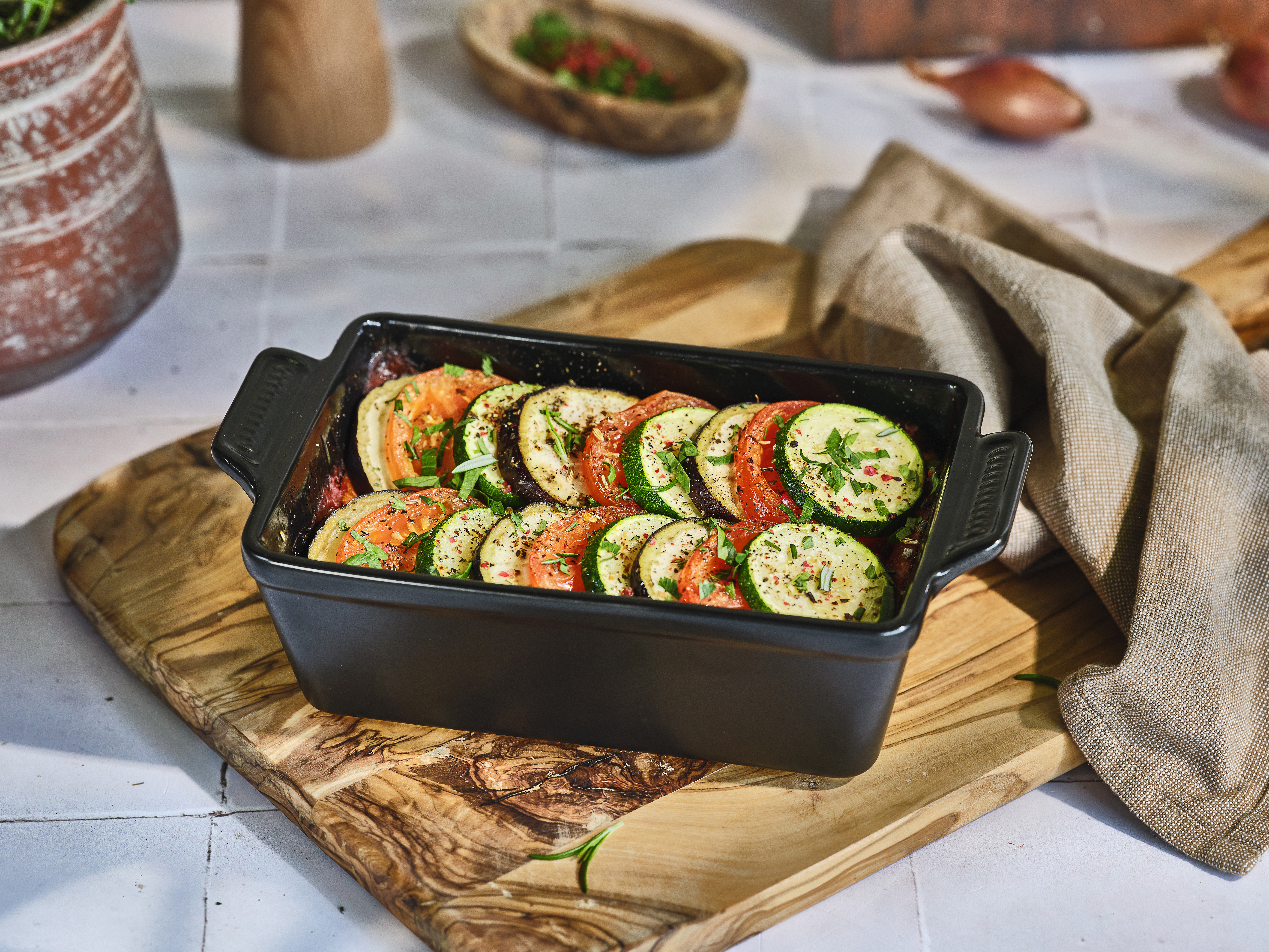 Met de Onyx-collectie kiest u voor praktische ovenschalen en tajines die prachtig staan op tafel. De matzwarte buitenkant geeft een moderne en elegante uitstraling die in elke omgeving past. De binnenkant heeft een glanzend zwarte afwerking voor extra gemak: eten bakt niet aan, laat gemakkelijk los en is eenvoudig schoon te maken. Onyx is gemaakt van duurzaam steengoed en is oven-, vaatwasser- en magnetronbestendig. De perfecte keuze voor koken en serveren! Niet geschikt voor gebruik boven open vuur.