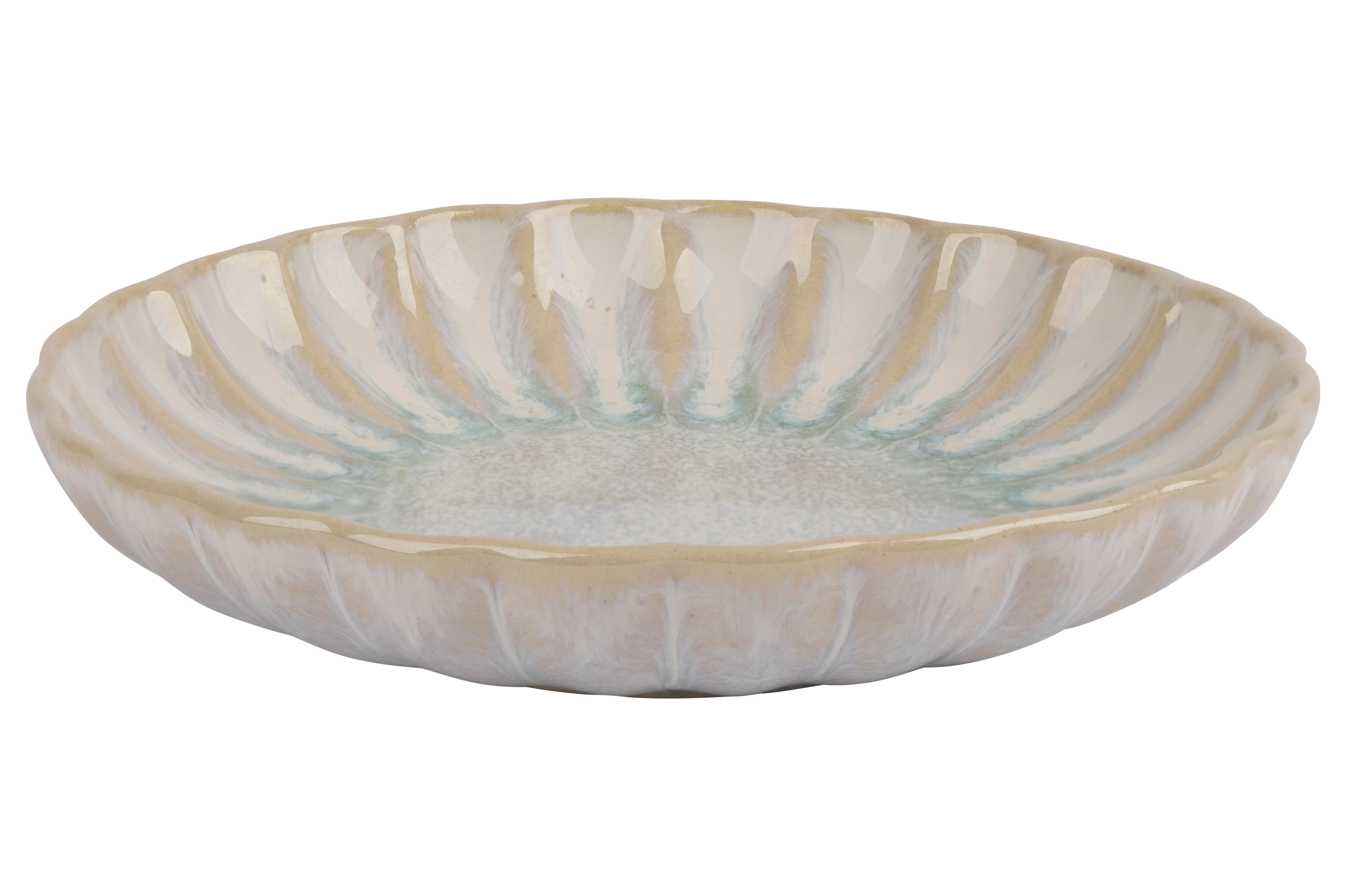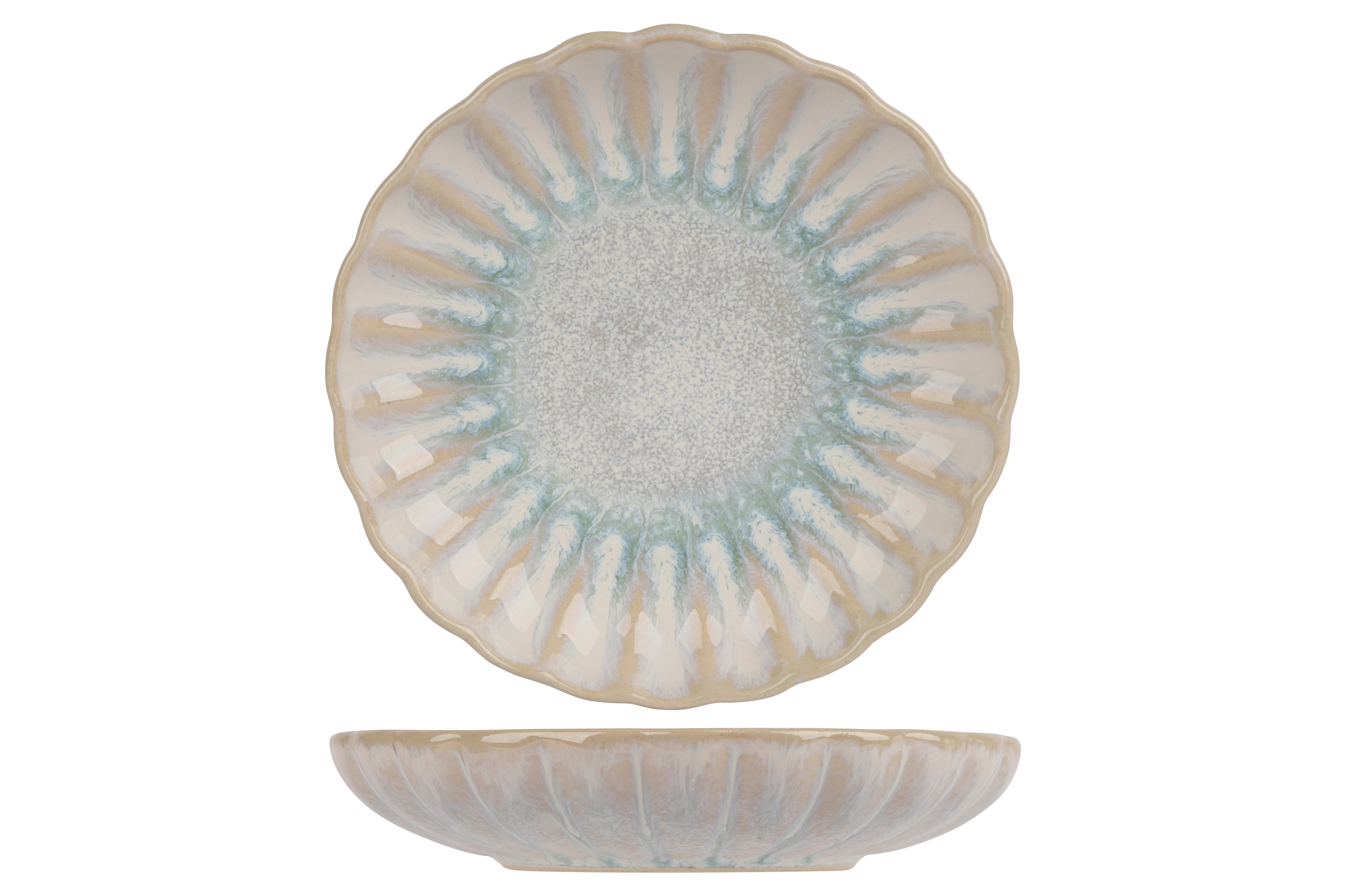 Het aardewerk uit de Astera reeks roept herinneringen op aan een traditioneel Japans servies met chrysantmotieven. De prachtig uitgevoerde bloembladen zijn zichtbaar en voelbaar. De bloembladen waaieren uit en vormen zachte geultjes die overgaan in een platte bordspiegel. Door de reacties van het glazuur in de oven verwent deze reeks uw gasten met spectaculaire kleurvariaties die altijd de aandacht trekken. Brede keuze aan borden, schalen en kommen, beschikbaar in Pure, Pearl en Ocean.