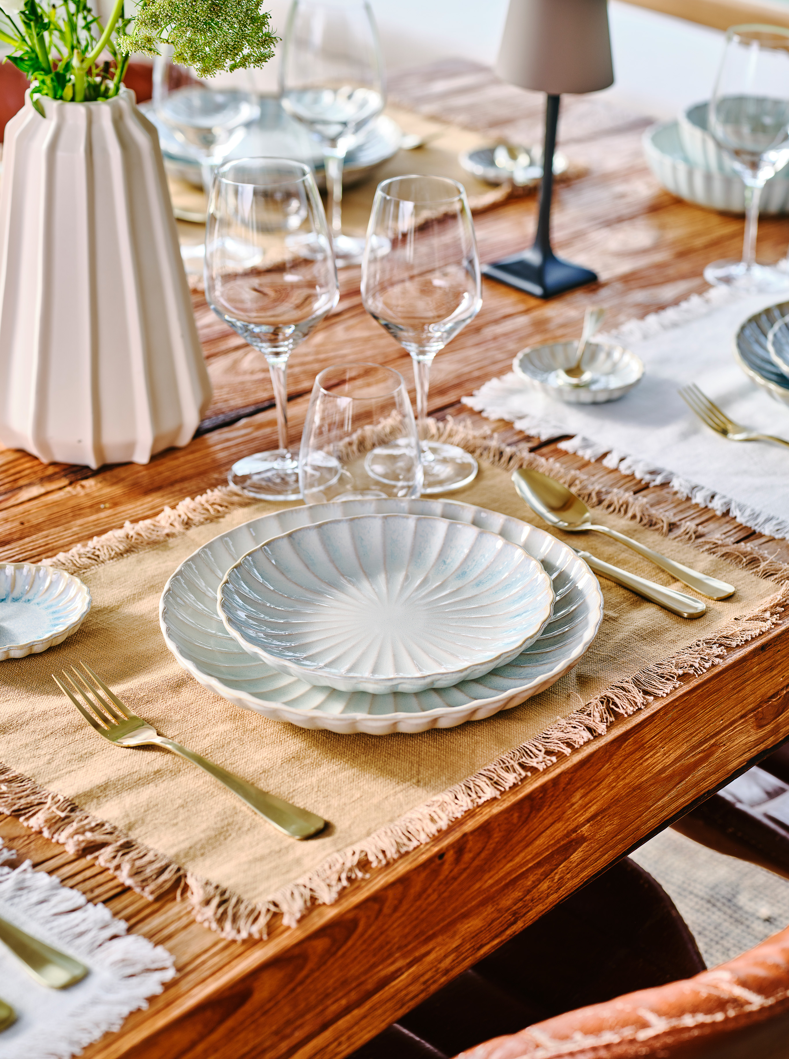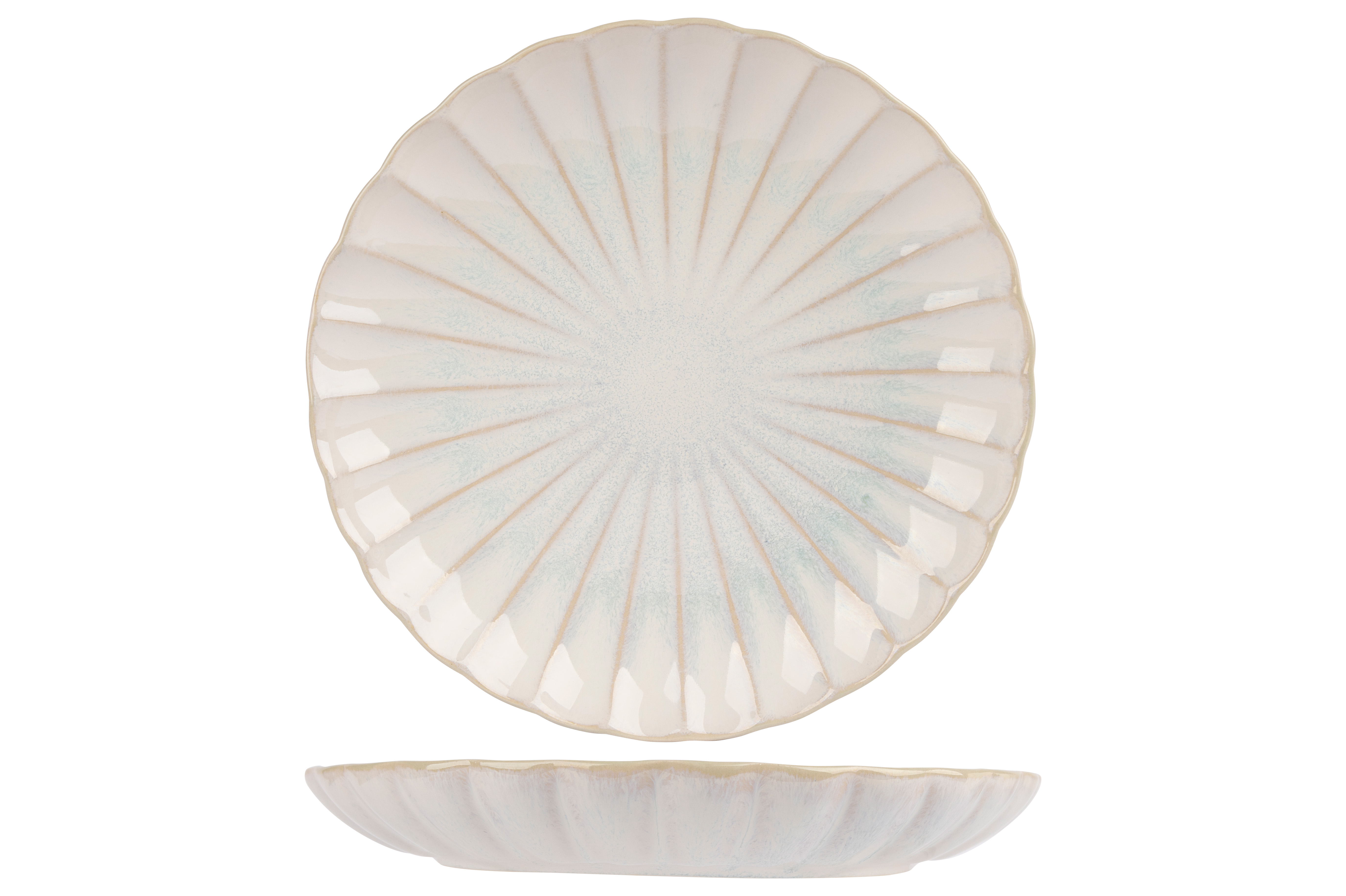 Het aardewerk uit de Astera reeks roept herinneringen op aan een traditioneel Japans servies met chrysantmotieven. De prachtig uitgevoerde bloembladen zijn zichtbaar en voelbaar. De bloembladen waaieren uit en vormen zachte geultjes die overgaan in een platte bordspiegel. Door de reacties van het glazuur in de oven verwent deze reeks uw gasten met spectaculaire kleurvariaties die altijd de aandacht trekken. Brede keuze aan borden, schalen en kommen, beschikbaar in Pure, Pearl en Ocean.