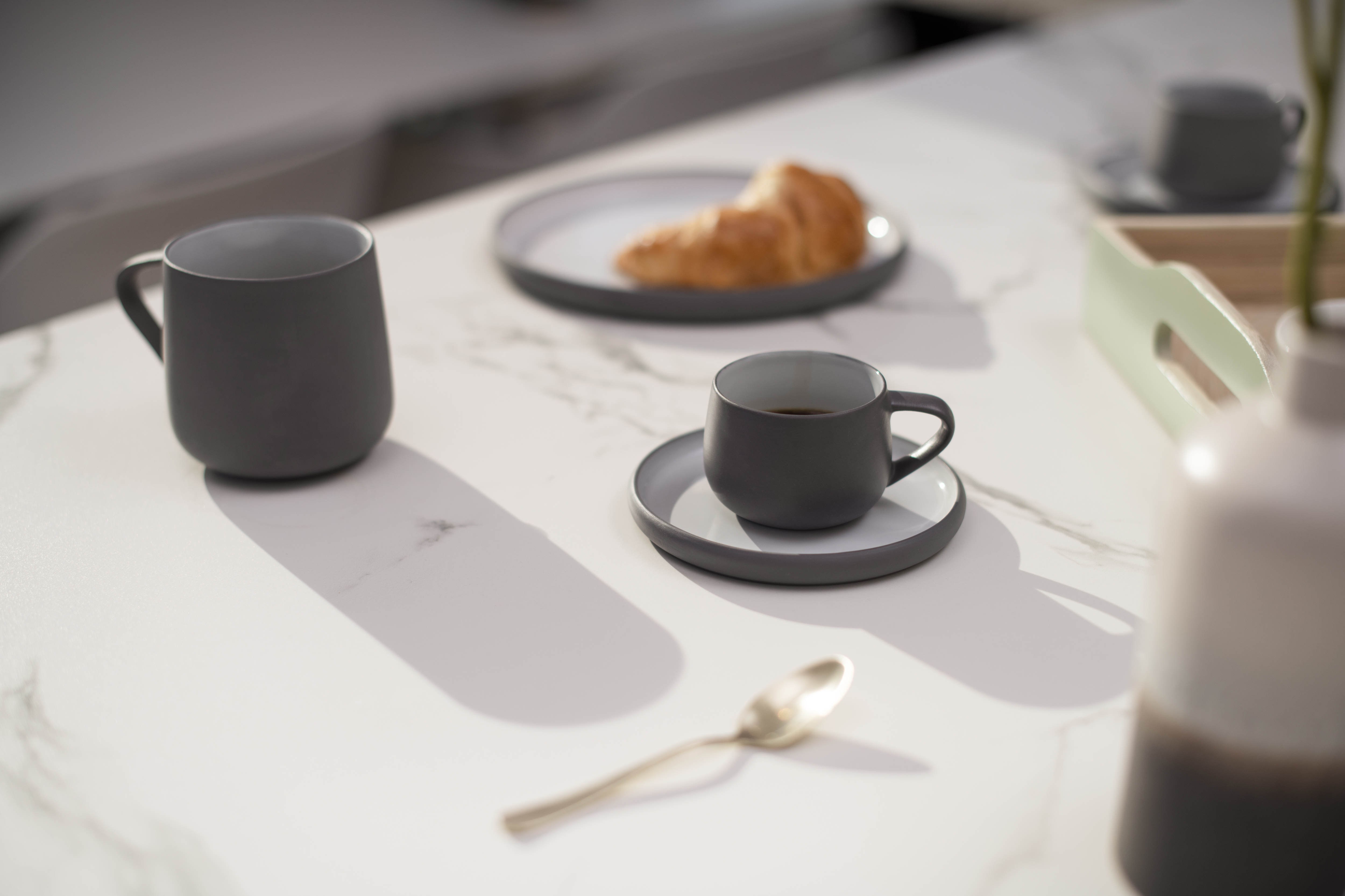 De Iowa reeksen zijn moderne, eenvoudige serviezen met een gestroomlijnde vormgeving, een ruwe, matte buitenkant en een licht glanzende binnenkant, in het wit of in het taupe.