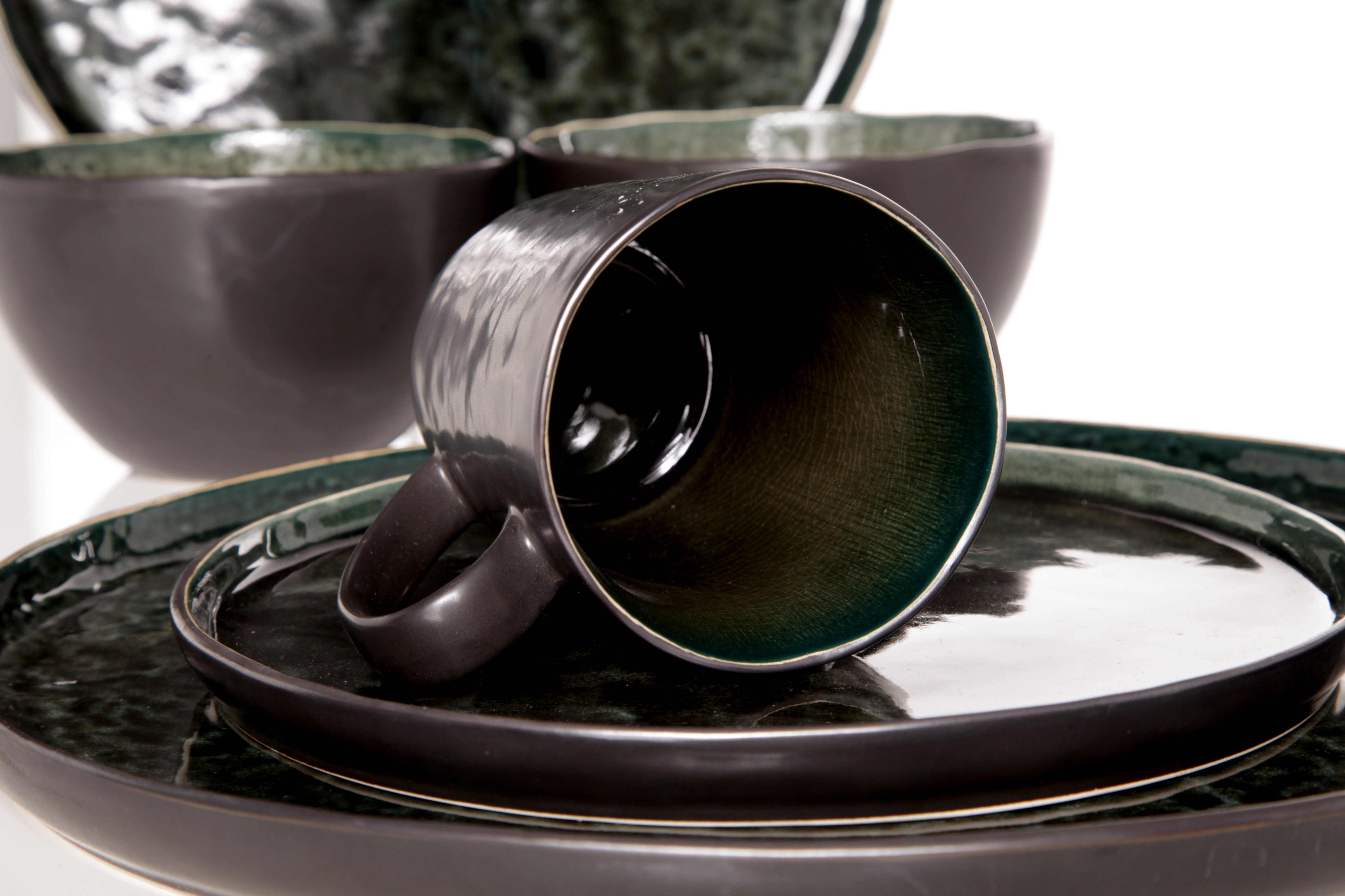 Laguna Verde, met zijn geheel eigen kleur, textuur en vorm, is een van de speciale serviezen van Cosy & Trendy. Het is een collectie in aardewerk met een modern golvend oosters design dat vanbinnen geglazuurd en aan de buitenkant subtiel blinkend is. Door het diepgroen oogt deze Laguna zeer exclusief.