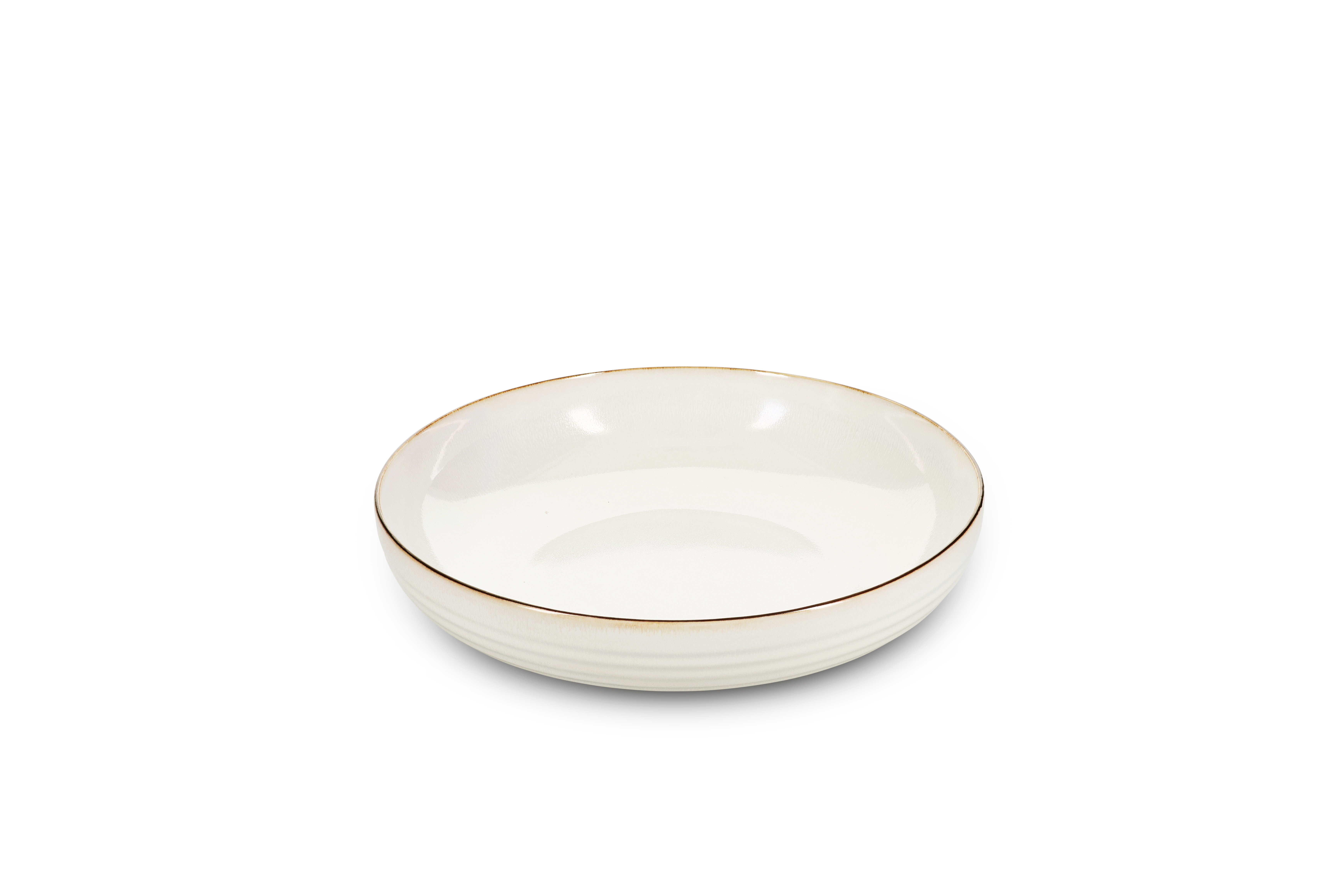 Serveer in stijl met de 32cm witte serveerschaal uit de Artisan collectie. Het organische ontwerp en de bruine rand brengen warmte aan je tafel. Perfect voor stevige pasta's of kleurrijke salades, het is een must-have voor elke thuiskok.