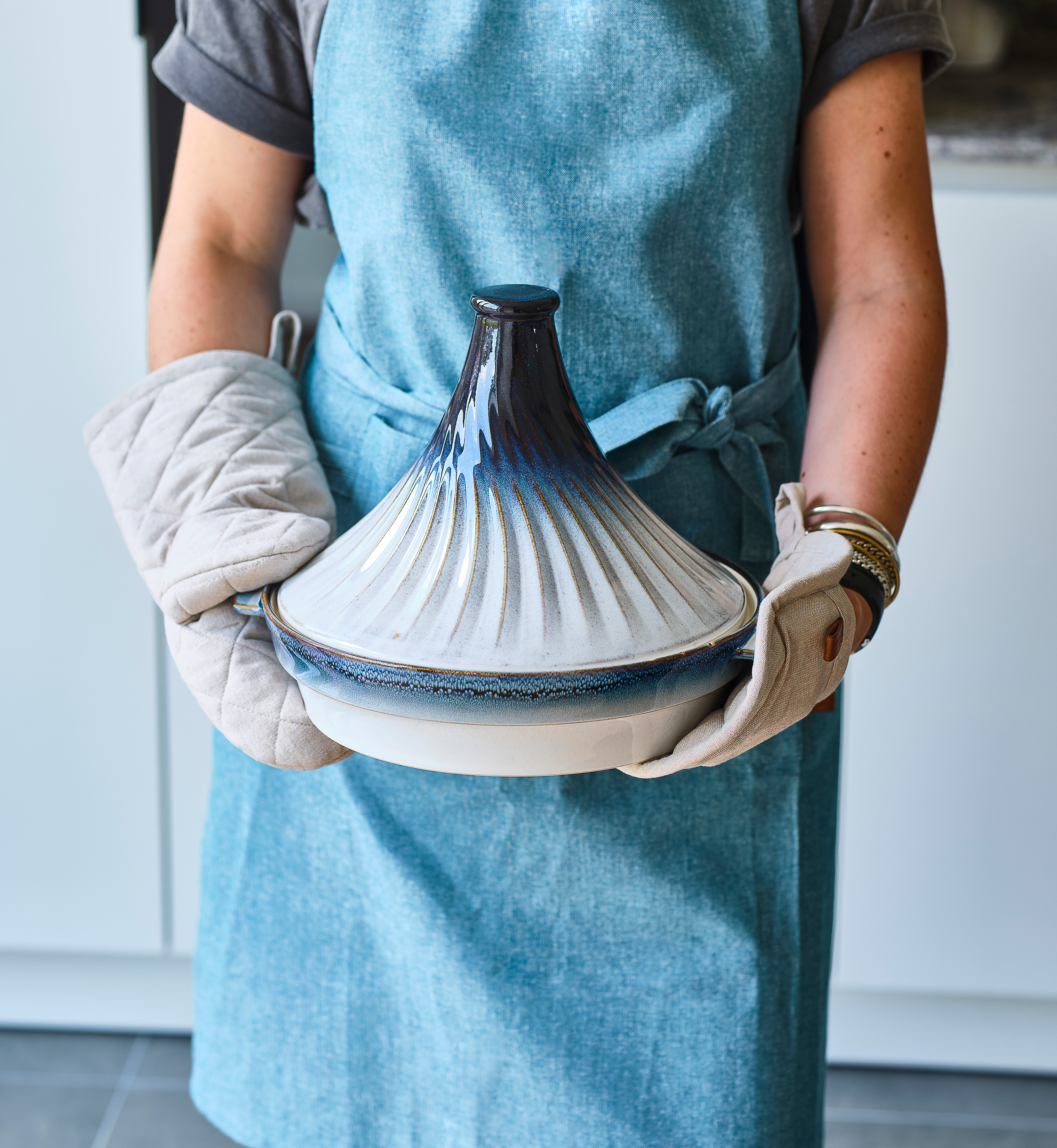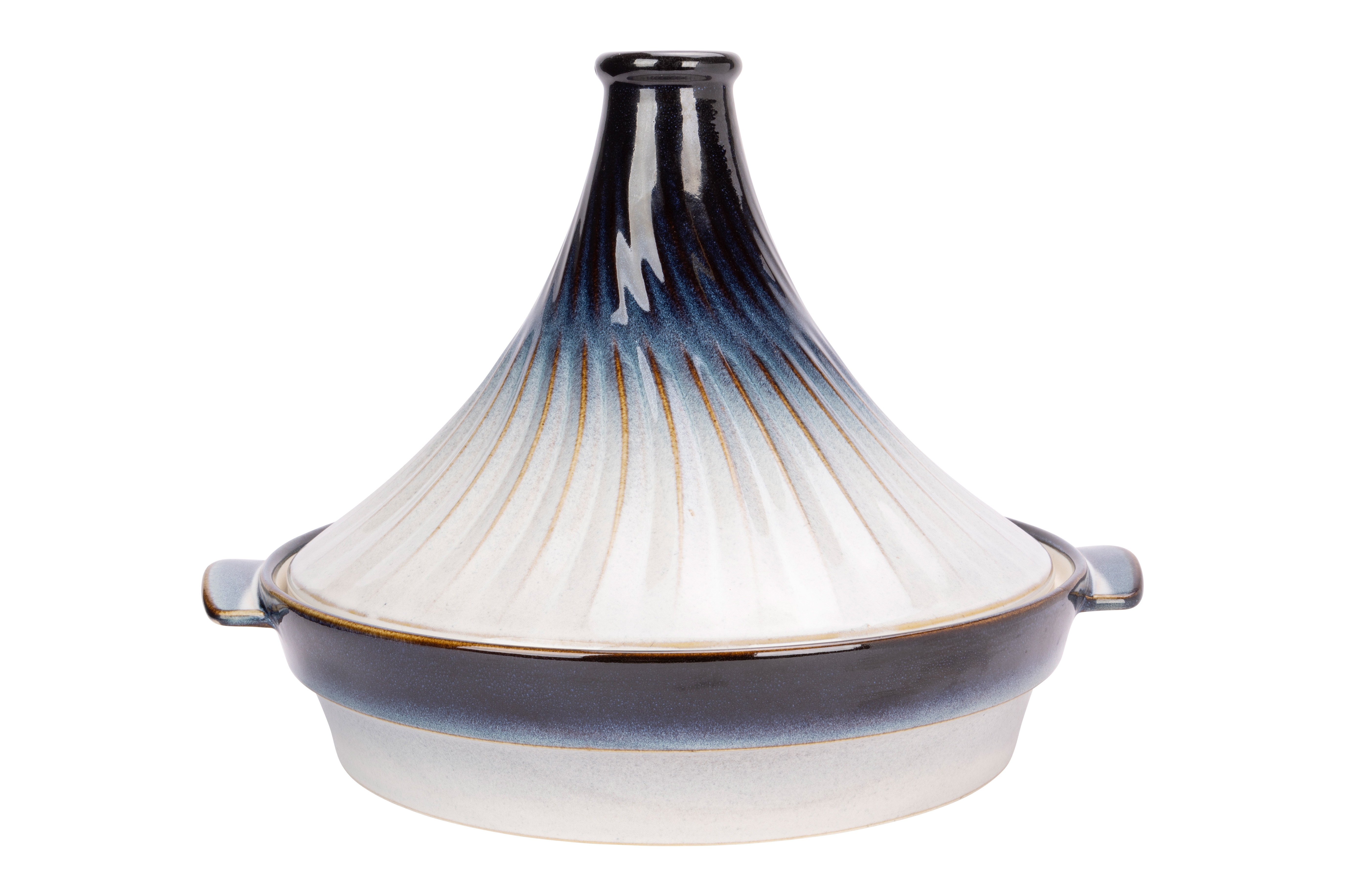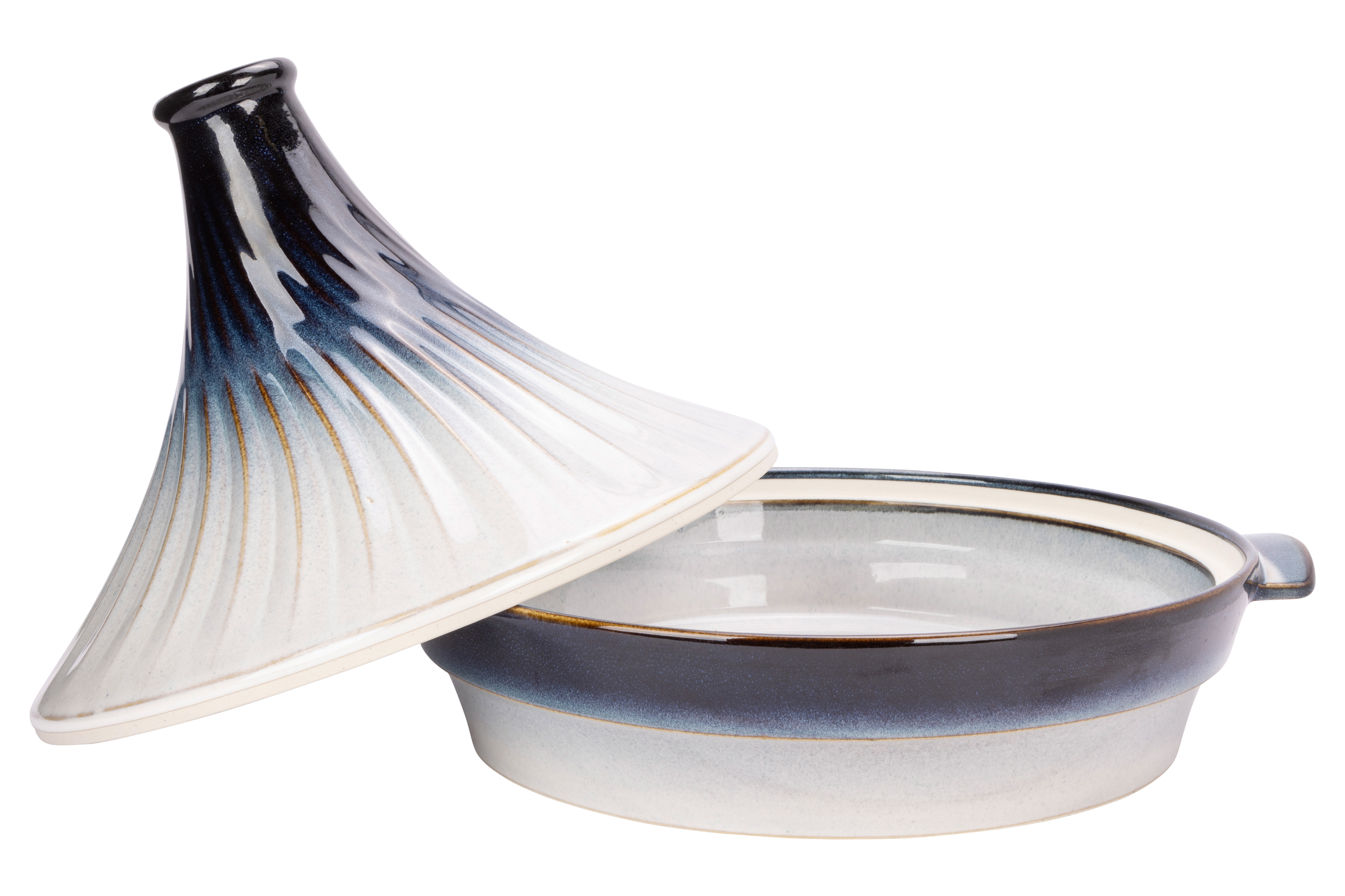 Nora Tajine D31.7XH23cm een mix van stijl en functionaliteit. Gemaakt van steengoed, heeft het een duurzaam en makkelijk schoon te maken oppervlak. De opvallende witte en blauwe kleurstelling voegt een vleugje elegantie toe aan elke keuken.